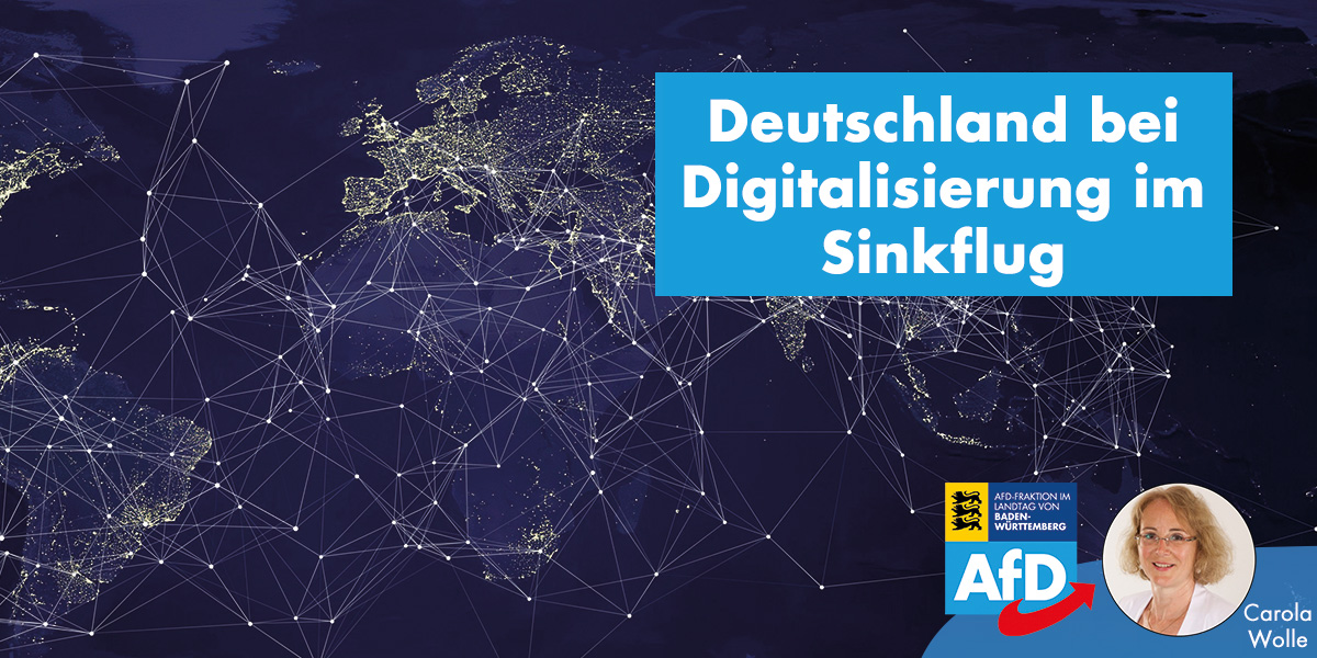 „Unser Land befindet sich auch in dem für die Zukunft so wichtigen Gebiet der Digitalisierung im Sinkflug.“ Mit dieser Einschätzung reagiert die wirtschaftspolitische Fraktionssprecherin Carola Wolle auf die aktuelle Studie der Wirtschaftshochschule IMD aus Lausanne. „Von den 63 untersuchten Ländern ist Deutschland im Ranking auf Platz 18 abgerutscht. 2016 war es noch Platz 15. IMD-Chefvolkswirt Christos Cabolis bestätigt alle bisherigen Befürchtungen: Es hapere in Deutschland an der technologischen Infrastruktur und an Investitionen in die Telekommunikation. Auch kennten sich hierzulande zu wenige im digitalen Raum zu wenig aus, die Bildungsmaßnahmen hätten offenbar bisher noch nicht genug gebracht. Ein geradezu vernichtendes Urteil für eine bisher führende Wirtschaftsnation.“