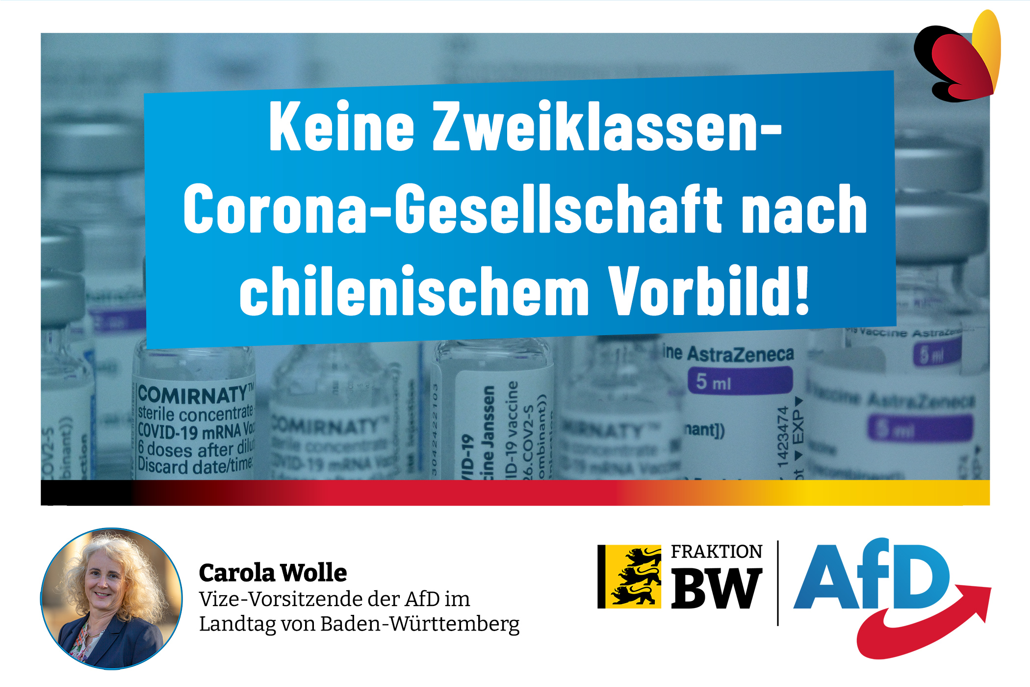 Die sozialpolitische Fraktionssprecherin Carola Wolle hat vor einer Zweiklassen-Corona-Gesellschaft nach chilenischem Vorbild gewarnt. „In Chile wurde jetzt ein Bevölkerungskontrollsystem aktiviert, das die Bevölkerung in eine Oberklasse und eine Kaste der Unterprivilegierten einteilt. Zur Oberklasse gehört, wer vollständig geimpft ist; zum Rest nicht nur sogenannte Impfverweigerer, sondern auch COVID-Genesene. Auch hierzulande wird mit medialem Getöse debattiert, ob geimpften oder genesenen Bürgern ihre Freiheiten zurückzugeben wären. Dabei geht es im Kern aber darum, allen Nichtgeimpften ihre Freiheitsrechte zu entziehen. So wird Druck erzeugt, der zu einer indirekten Impflicht führt, wenn man am normalen Leben teilnehmen möchte. Selbst Kinder sind inzwischen von der Hysterie nicht verschont. Es ist aber zutiefst menschverachtend, die Gewährung elementarer bürgerlicher Freiheiten allein an eine Impfung zu binden!“