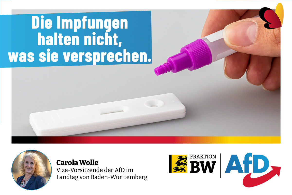 Der Impfappell der Südwestmediziner ist heuchlerisch. Die Impfungen halten nicht, was sie versprechen. Die sozialpolitische Fraktionssprecherin Carola Wolle bekräftigt die AfD-Forderung: 1 G für alle – Getestet.