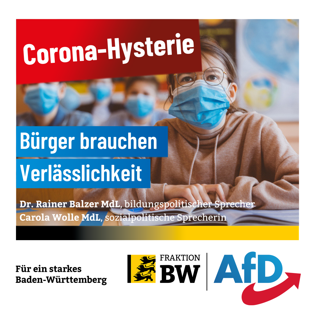 Der bildungspolitische AfD-Fraktionssprecher Dr. Rainer Balzer hat die Aussagen von Innenminister Thomas Strobl (CDU) als absurd zurückgewiesen, Corona-Maßnahmen an Schulen auch über den 20. März hinaus zu verlängern. „Strobl schlägt in dieselbe Kerbe wie die Kultusministerkonferenz KMK, deren Einwände nur mehr kinderfeindlich und absolut abzulehnen sind. Kaum hatten Schüler und Eltern gehofft, mit der Corona-Hysterie habe es nun endlich ein Ende, macht ihnen Strobl einen Strich durch die Rechnung und will an den Schulen und darüber hinaus in den Innenräumen die Maskenpflicht bis April beibehalten. Ich frage mich, ob die Schüler noch nicht genug gelitten haben. Wir als AfD-Fraktion fordern stattdessen einen reibungslosen Schulbesuch für alle – ohne Maske, ohne Impfung, ohne Tests. Und zwar sofort. Denn der Bürger muss sich wieder auf Zusagen seitens der Regierung verlassen können.“