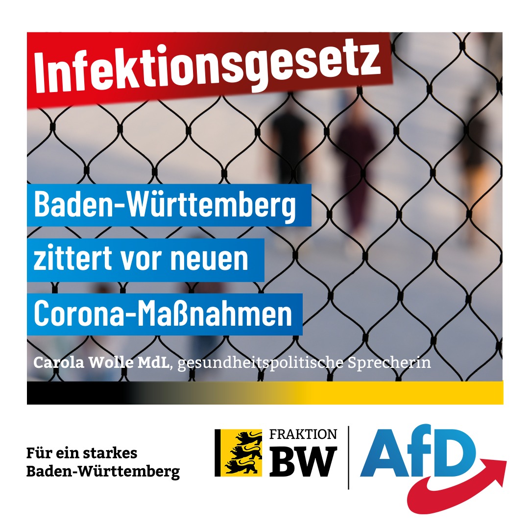 „Es reicht jetzt: Gesundheitsminister Lucha (Grüne) will uns im Herbst wieder mit unsinnigen 2G- und 3G-Regelungen und vor allem mit Lockdowns behelligen“, kommentiert Carola Wolle die Reaktion der Landesregierung Baden-Württembergs auf den ersten Entwurf zum neuen Infektionsschutzgesetz. Manfred Lucha fehlen im Gesetz nach eigenen Worten 2G/3G sowie „Kontaktbeschränkungen“ – im Klartext: „Lockdown-Maßnahmen“. Scharf kritisiert die gesundheitspolitische Fraktionssprecherin Carola Wolle dass der neue Text von Lauterbach (SPD) und Buschmann (FDP) auch eine Maskenpflicht an Schulen ermöglicht – ab welchem Alter ist noch unklar. „Das muss in Baden-Württemberg verhindert werden. Bei der Entscheidung sind dieses Mal auch die gewählten Volksvertreter im Landtag gefordert. Schluss mit dem Regieren per Notverordnung!“