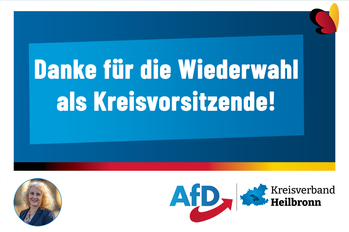 Der Kreisverband Stadt- und Landkreis Heilbronn der Alternative für Deutschland (AfD) führte am heutigen Samstag, 04.11.2023 seine regulären Vorstandsneuwahlen nach zwei Jahren Amtszeit durch. Von den bisherigen Kreisvorsitzenden Dr. Rainer Podeswa und Carola Wolle trat nur Frau Wolle als Kreisvorsitzende erneut an und wurde ohne Gegenstimmen wiedergewählt.