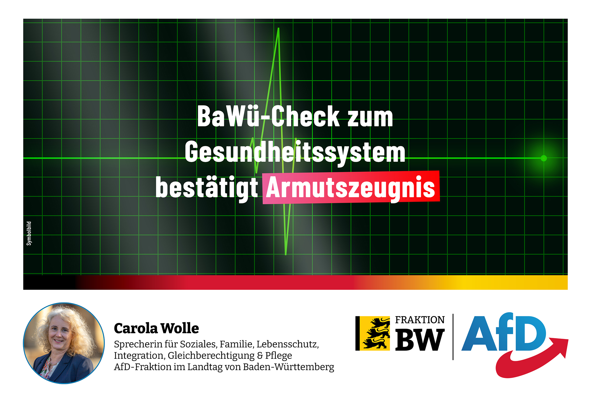 Für die sozialpolitische AfD-Fraktionssprecherin Carola Wolle sind die Ergebnisse des Allensbacher BaWü-Checks die Quittung für die Unfähigkeit von Sozialminister Manfred Lucha (Grüne):