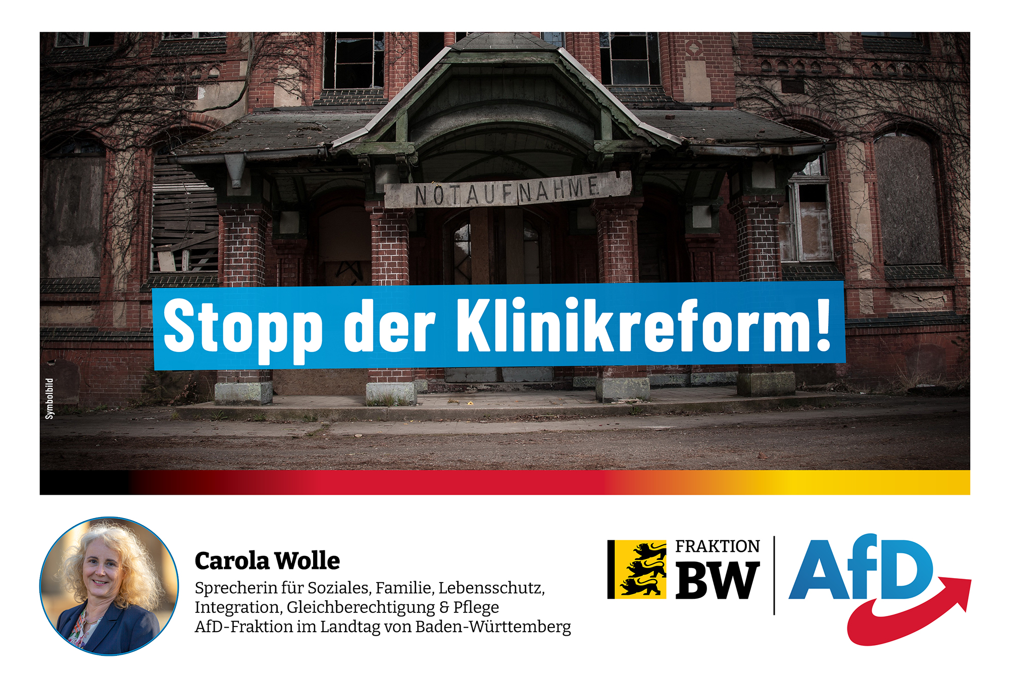 „Von Berlin bis Stuttgart wird über ‚Leistungsgruppen‘, ‚Zentralisierung‘ und ‚Strukturbereinigung` fabuliert, aber elementare Fragen zwischen Bund und Ländern sind noch völlig unklar.“ Mit diesen Worten reagiert die sozialpolitische AfD-Fraktionssprecherin Carola Wolle auf die Warnung der Baden-Württembergischen Krankenhausgesellschaft (BWKG) vor den Folgen der geplanten Krankenhausreform.