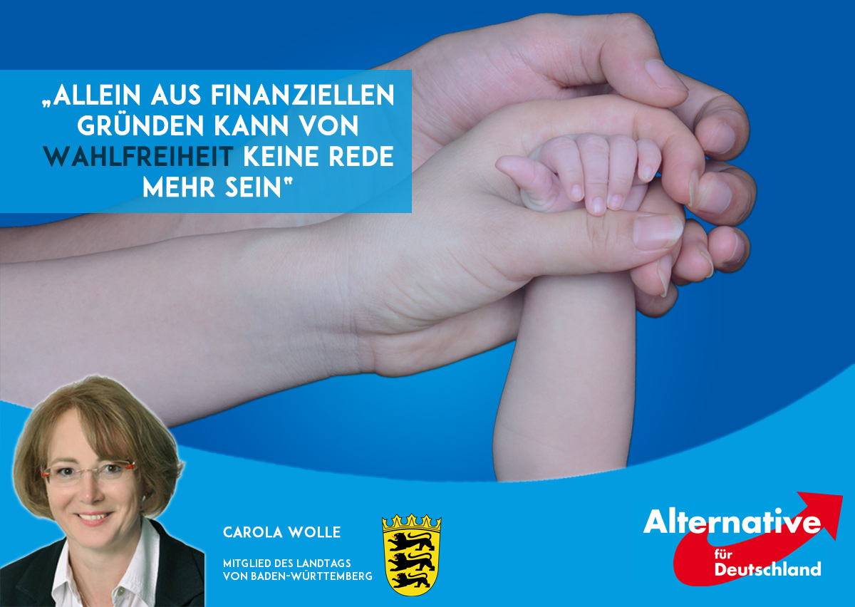 Immer mehr Paare mit Nachwuchs müssen einer Vollzeit-Erwerbstätigkeit nachgehen, um die Familie zu finanzieren und zu ernähren. „Allein aus finanziellen Gründen kann von einer Wahlfreiheit zwischen Eigen- und Fremdbetreuung inzwischen längst keine Rede mehr sein“, so Carola Wolle. „Kinder stellen inzwischen in Deutschland sogar ein erhebliches Armutsrisiko dar. So verwundert es nicht, dass die Geburtenrate in Deutschland weiterhin hartnäckig auf einem sehr niedrigen Niveau verharrt. Dem demographischen Wandel und der damit einhergehenden Überalterung des deutschen Volkes, mit allen negativen Auswirkungen auf die Arbeitswelt und unser Sozialsystem, wird nicht konsequent entgegengetreten.“