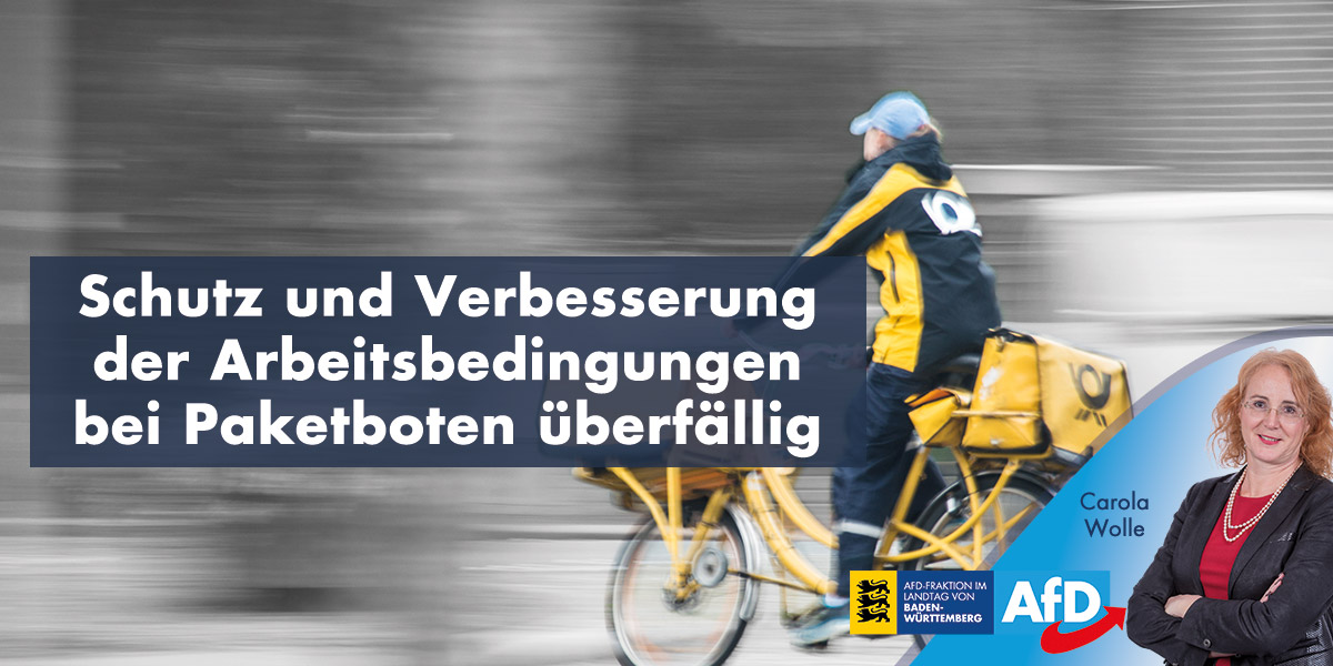 Zur aktuell von der Bundesregierung geplanten Verbesserung der Arbeitsbedingungen bei Paketboten äußerte sich Carola Wolle, wirtschaftspolitische Sprecherin der Stuttgarter AfD-Fraktion, wie folgt: „Es ist schon lange überfällig, dass die miserablen Arbeitsbedingungen im Bereich der Paket-Zustelldienste verbessert werden. Die seit Jahren durch den Onlinehandel-Boom steigende Anzahl an Paketen macht diese Anpassung überfällig. Hier hätte bereits früher gehandelt werden sollen. Es ist daher richtig, dass es zu einer Sicherstellung des Mindestlohns als auch der Einhaltung der abzuführenden Sozialabgaben kommt. Diese Sicherstellung sollte jedoch beim Staat liegen und nicht den Unternehmen aufgedrückt werden“, so Wolle.