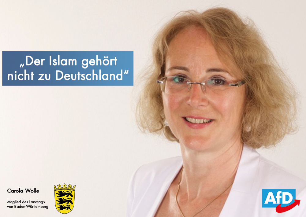 Carola Wolle zur Aussage von Horst Seehofer, dass der Islam nicht zu Deutschland gehört. „Mit dieser Aussage hat Horst Seehofer völlig Recht“, so Carola Wolle: Bereits in unserem Wahlprogramm zur Landtagswahl in Baden-Württemberg haben wir darauf hingewiesen, dass der Islam nicht zu Deutschland gehöre.