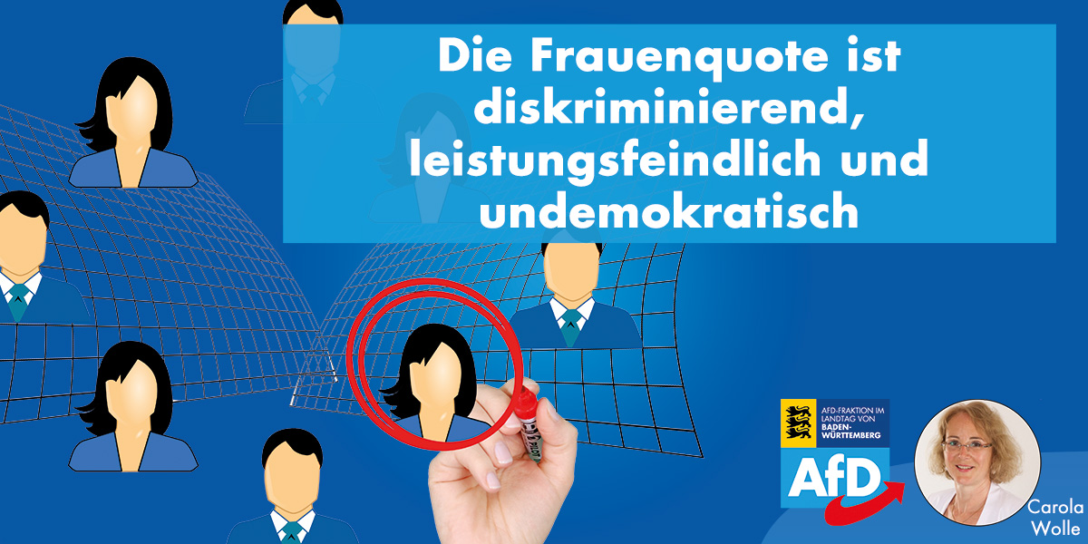 „Und wieder ist die CDU vor dem Zeitgeist eingeknickt“ stellt Carola Wolle fest. Vor kurzem noch undenkbar, habe sie nun die Einführung einer Frauenquote beschlossen. Zwar müsse das Votum der Satzungskommission vom Bundesparteitag noch beschlossen werden. „Doch wir wissen, dass die Partei schon lange nicht mehr die Kraft hat, sich gegen ihre fortschreitende innere Selbstauflösung zu wehren“, so Wolle. Nicht zufällig sei es dieser Tage Rita Süssmuth gewesen, die sich massiv für die Quote eingesetzt habe. Also genau die Frau, die wie kaum eine andere für den inhaltlichen Niedergang der CDU mit verantwortlich gewesen sei. „Nun werden also die Reste dessen, was von der einst stolzen konservativen Partei übriggeblieben ist, endgültig geschliffen“, so Wolle.
