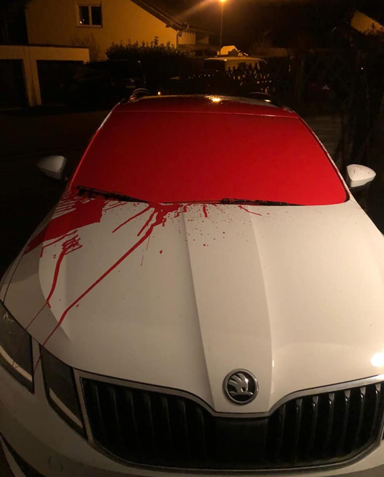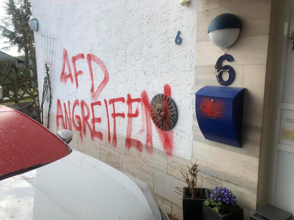 Linke Faschisten verübten heute Nacht gegen 1:30 Uhr im Schutz der Dunkelheit einen feigen und hinterhältigen Anschlag auf mein Haus.